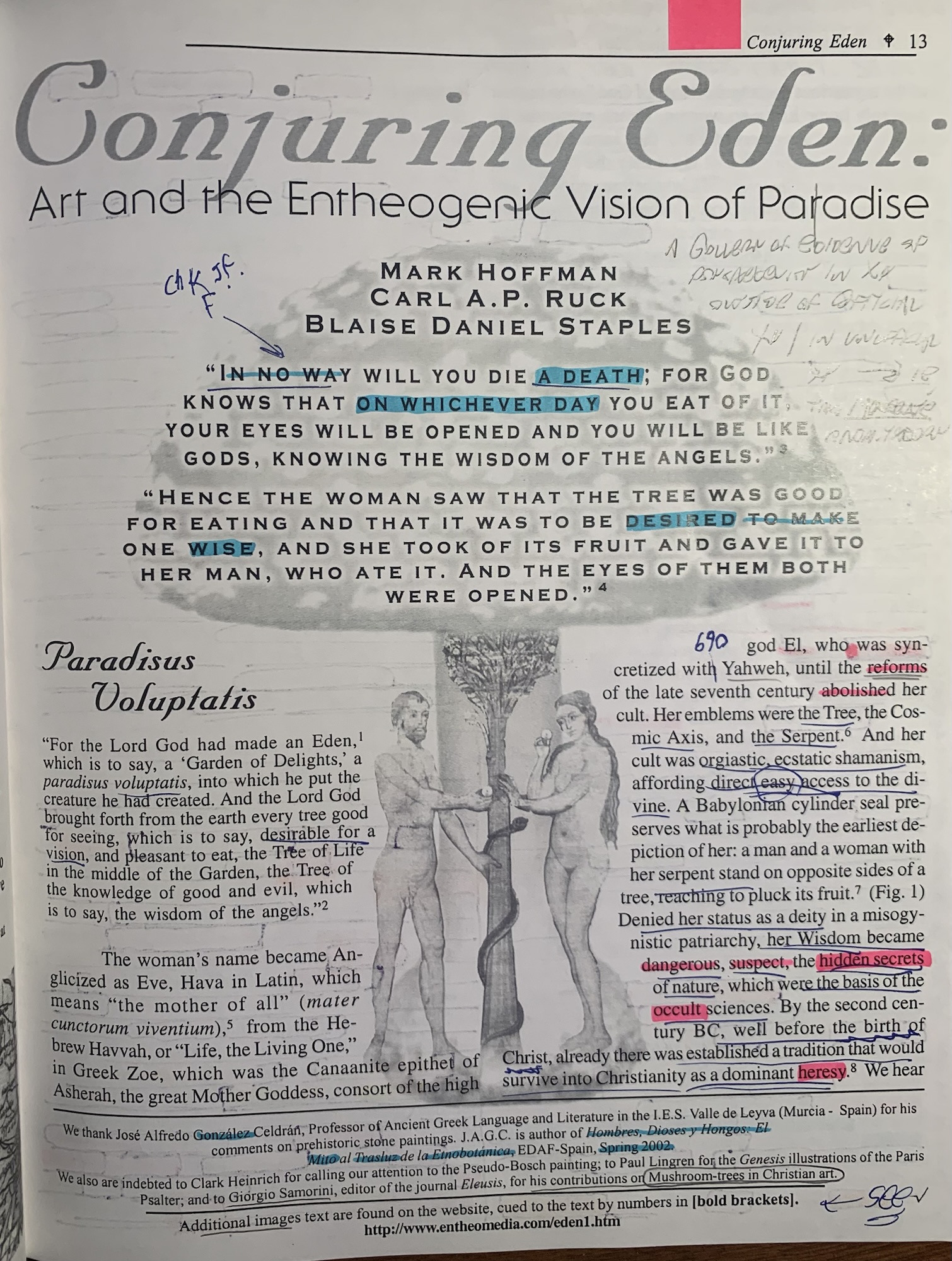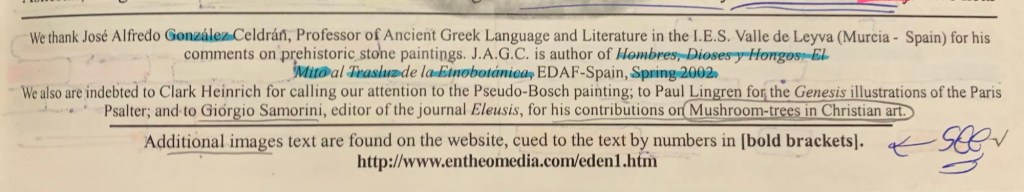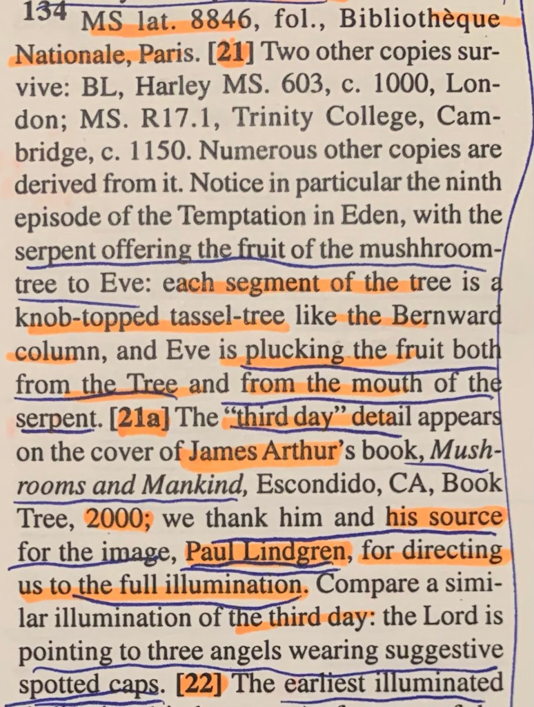 Paul Lindgren in 1999 discovered massive quantities of mushroom imagery in Great Canterbury Psalter and thus began with my collegeu shortly after, James Arthur cover of book Mushrooms and Mankind 2000. Lindgren is credited TWICE in the MUST-HAVE, “your entheogen scholarship is NOTHIGN if you don’t have” article: