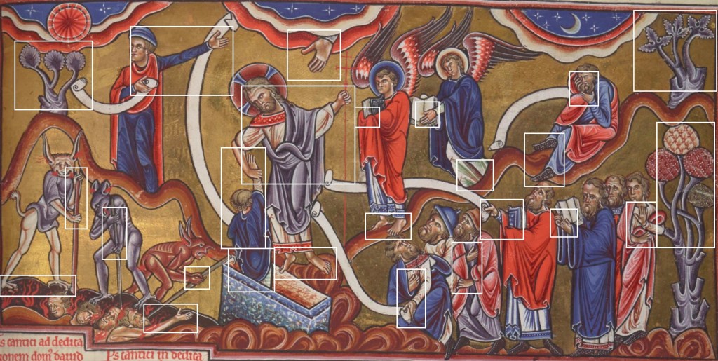 f107 white boxes on pairs of hands Great Canterbury Psalter