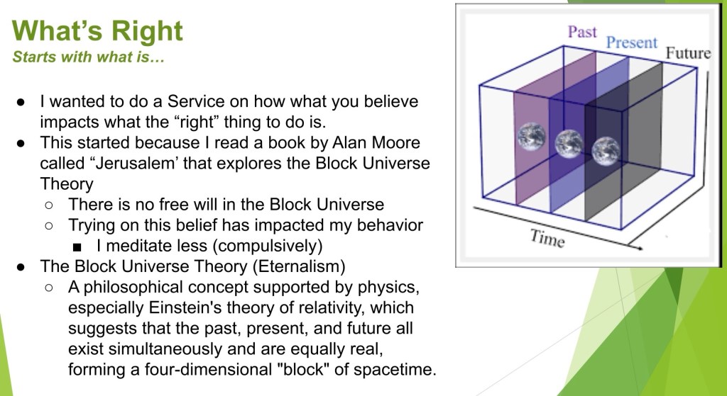 Prayer together. Risk; negative clarification: Avoid multiple conflicting theologies. We only have 1 theology, Least Dogma; recite that as prayer.