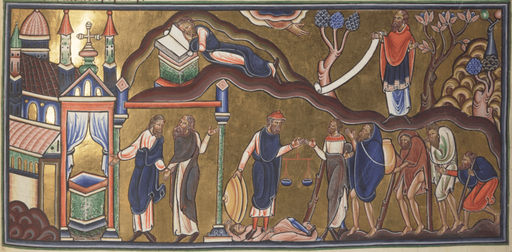 Hanging from Right Leg in Mushroom Tree (Canterbury Psalter f134) – Catalog of Image Crops