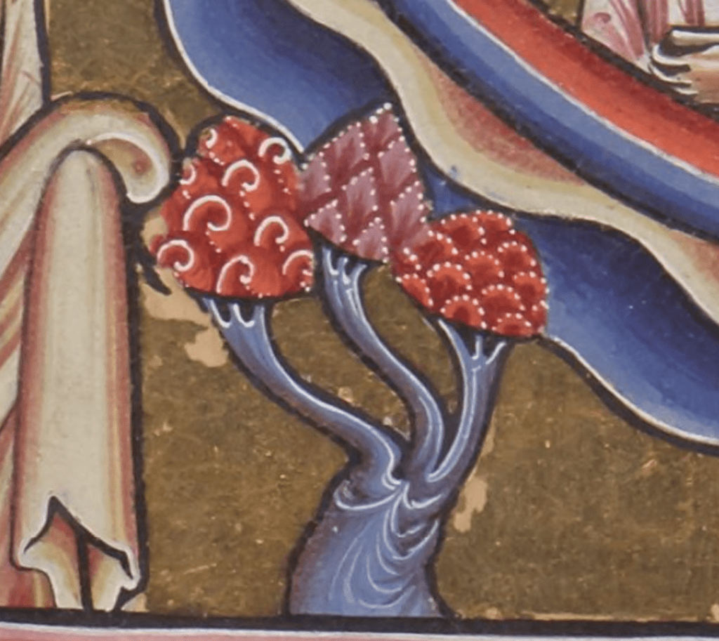 Folio 134 Detail – 1 mushroom tree, 1 vine-leaf tree