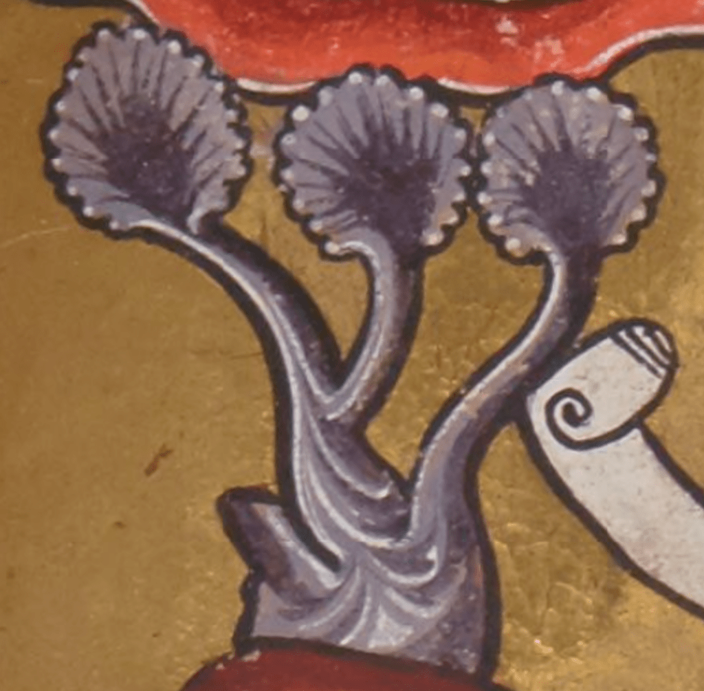 Folio 177 Detail – 1 mushroom tree, 1 vine-leaf trees, 1 left/right leg