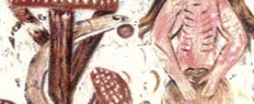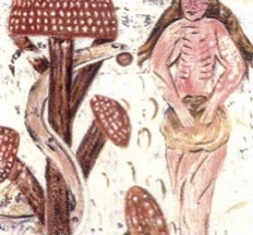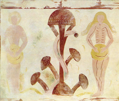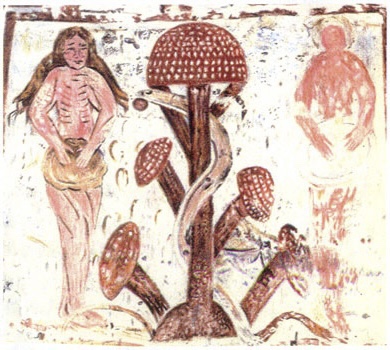 the Plaincourault Fresco has two mushrooms to the left and two mushrooms to the right – the same branching morphology as the human or animal.