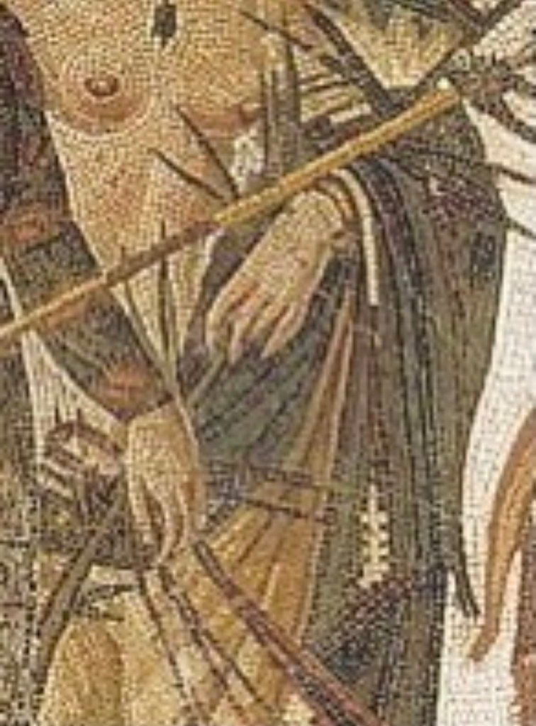 this is on the same order of magnitude as my other breakthroughs this week. BUT that was only regarding the branch versus Spear contrast; I still when I created “too late to catch the realtime breakthrough”, created this page a few minutes ago, I still – to this point a- had failed to even think of asking which hand she holds it in or whether we can see that – even though , even though I had deliberately looked at this mosaic maybe yesterday.