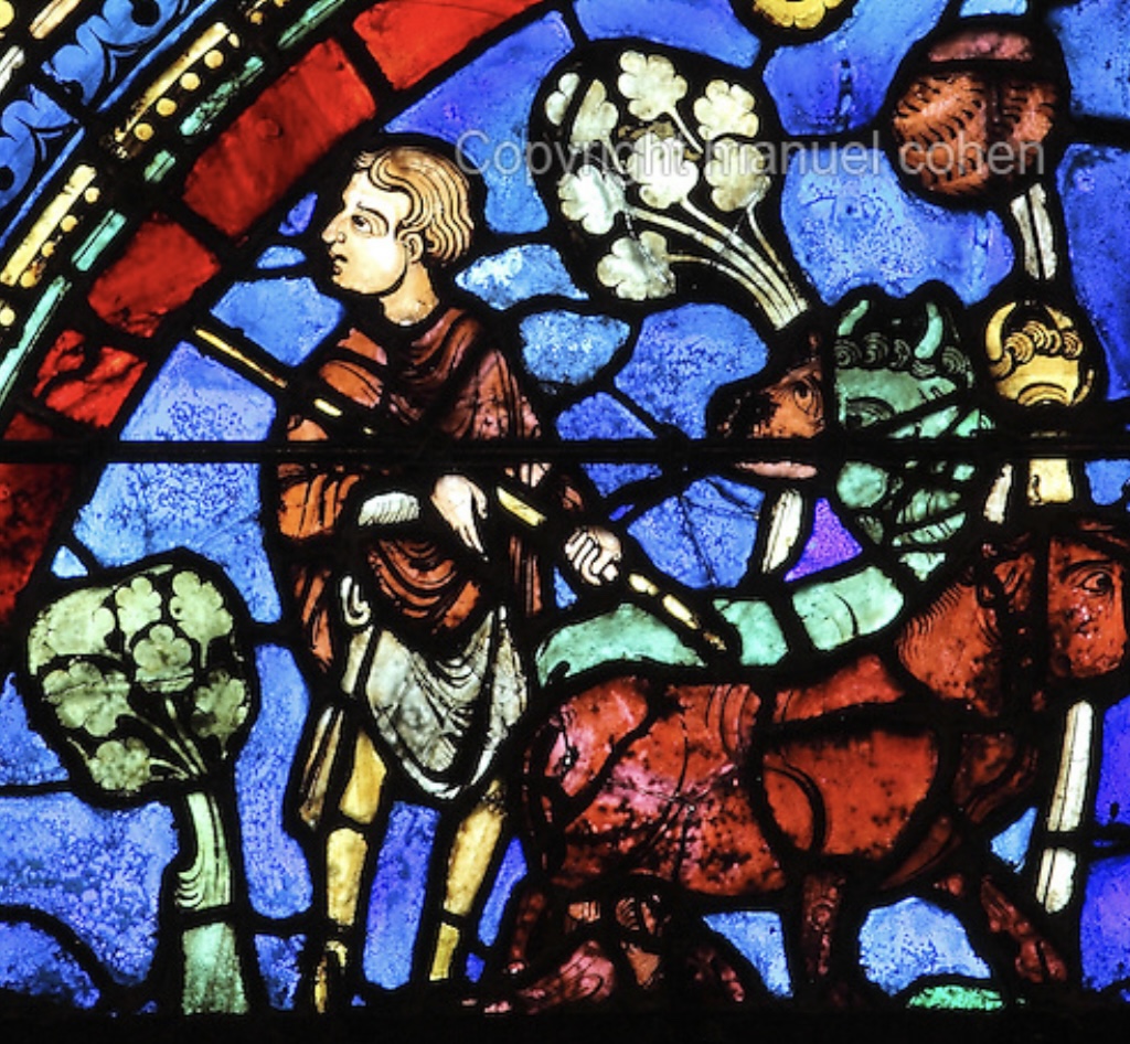 10 of 75 mushroom plants of Canterbury Psalter (13.3%) have no traces of ramification, and the middle 2 of 4 mushroom trees in this cathedral stained glass window have a trace of ramification: