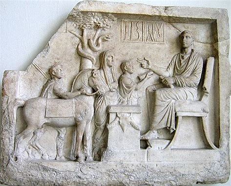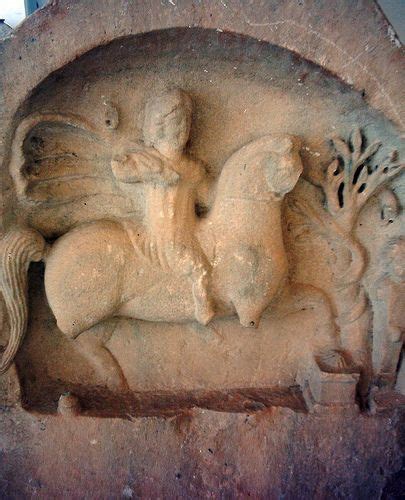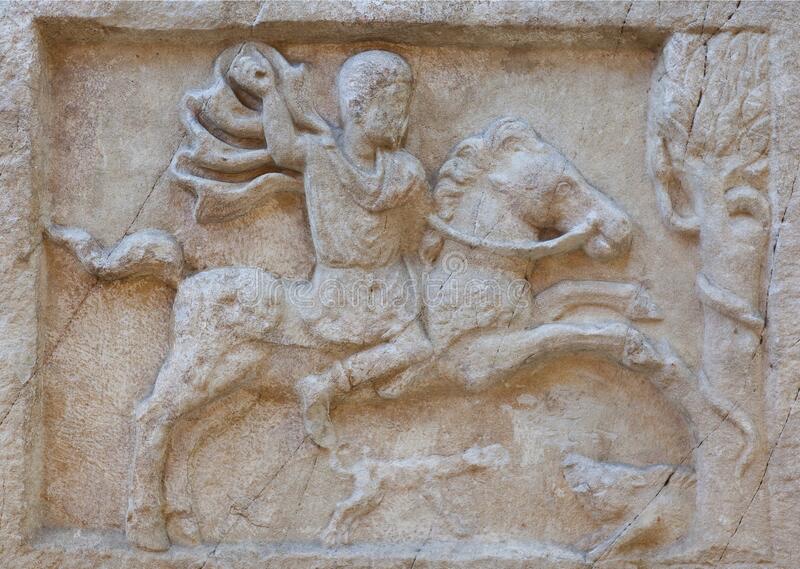Rider on horse approaching snake in tree on right is very common in Greek funerary monuments.