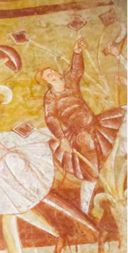 Right arm: A spear aimed at Jesus’ side, not Browns’ “slightly curved sword”.