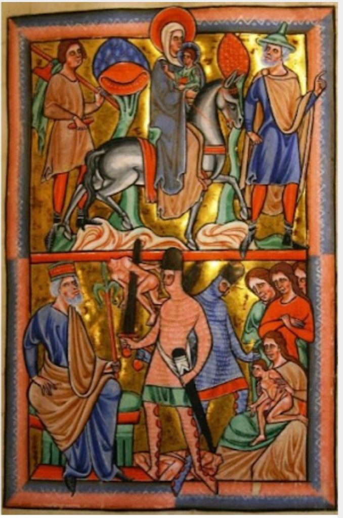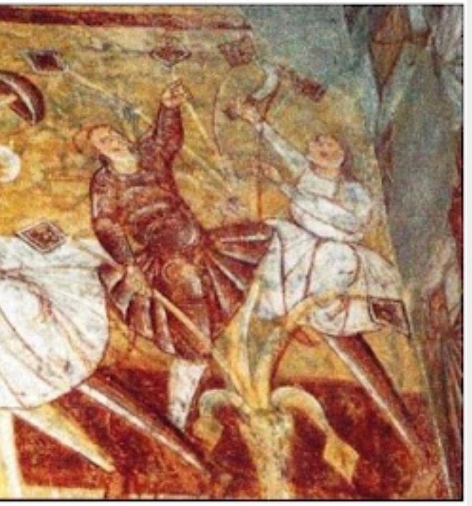 That branch held in right hand, spear aimed at Jesus’ right side, is Browns’ “slightly curved sword”.
