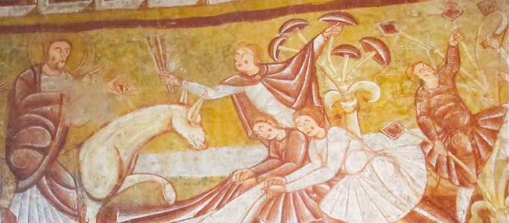 Spear on right (not curved sword per Browns) aimed at Jesus moving toward the gate of ego death/ shedding garment/ using the key/ password/ relying on right leg not left leg — plus whole donkey/ path/ rider/ steering complex/ Balaam’s angel-gate conditional “pass if” “I speak only the words God gives me” (Balaam) (out of frame on left: Isaiah receiving coal to cleanse impure lips.