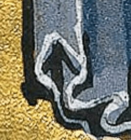 - decoded by Cybermonk [2:23 p.m. February 11, 2023] – Enoch carried to heaven has a bent left leg, re: The Std Question “what % of weight on right leg/foot?” Artist signals “More weight on right than left leg”.