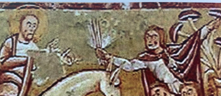 Samo 98 writes “The next item we shall consider was located by the German chemist JOCHEN GARTZ (1996). It is a bas-relief from the bronze doors of the cathedra.l in Hildesheim close to Hannover (northern Germany) by an artist named Bernward, dating back to circa 1020 (fig. 19). “