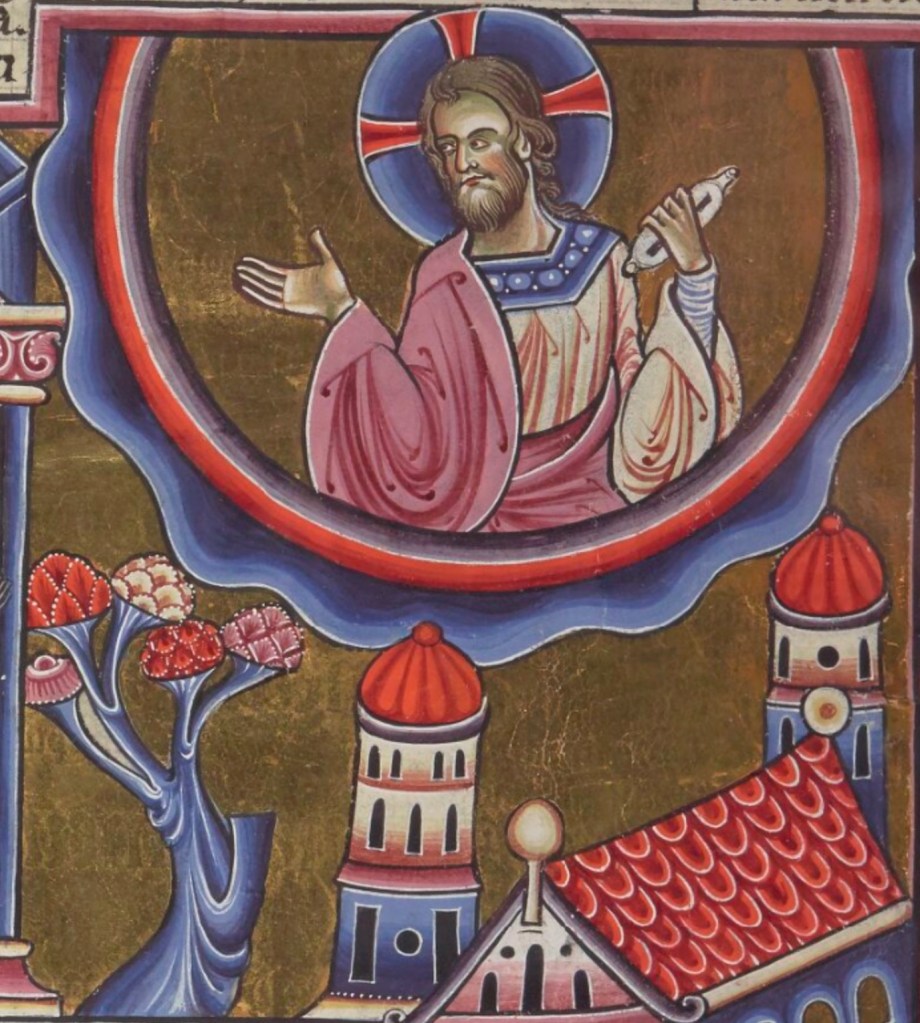 Great Canterbury Psalter contains 2 Amanita trees, and red-leaf caps with white tips.