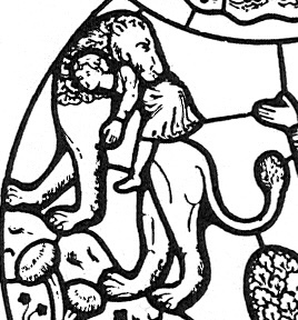 eg I am happy to find that St Eustace, Right paw touches the good, Right-hand branch of the branching mushroom tree on the left.