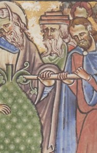awareness high elevated to see from a different, higher vantage point, the lower, child thinking, and its capability of hang dead sacr king in on branch tree rock fire blade tree ruler child ram ox rock altar temple priest