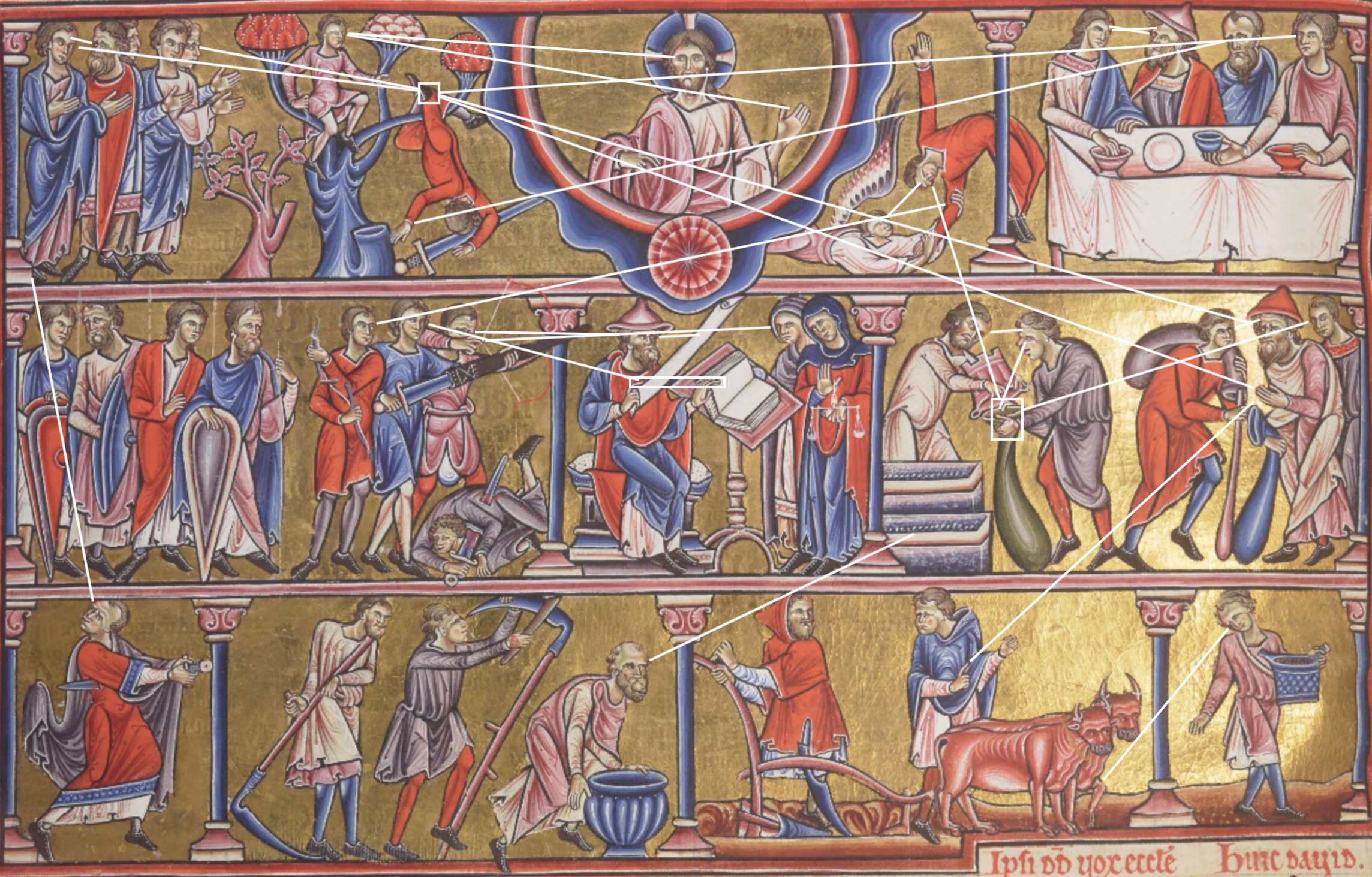 - from Great Canterbury Psalter, instance of {rock altar of sacrifice at the doorway temple passage gateway boundary crossing}