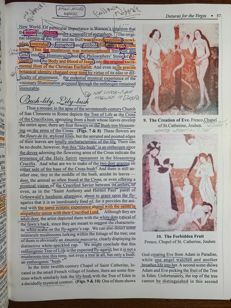 I read aloud pp 103-105 The Holy Mushroom Irvin 2008.