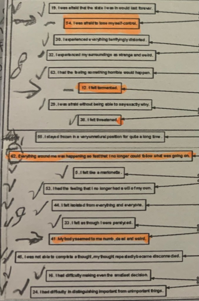 87. I had trouble distinguishing between what I imagined and what I really experienced.