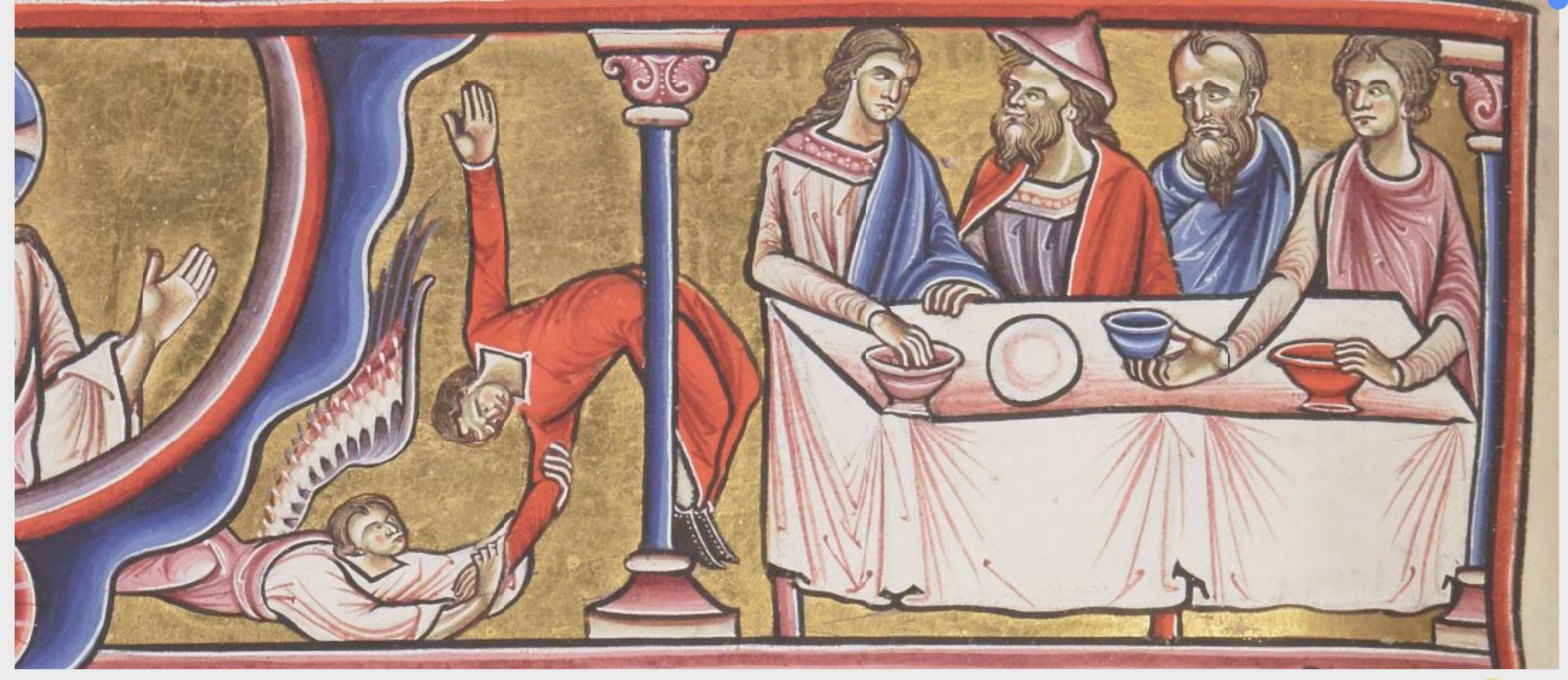 Instances of the {two-headed person} motif in image f134 of Great Canterbury Psalter:
