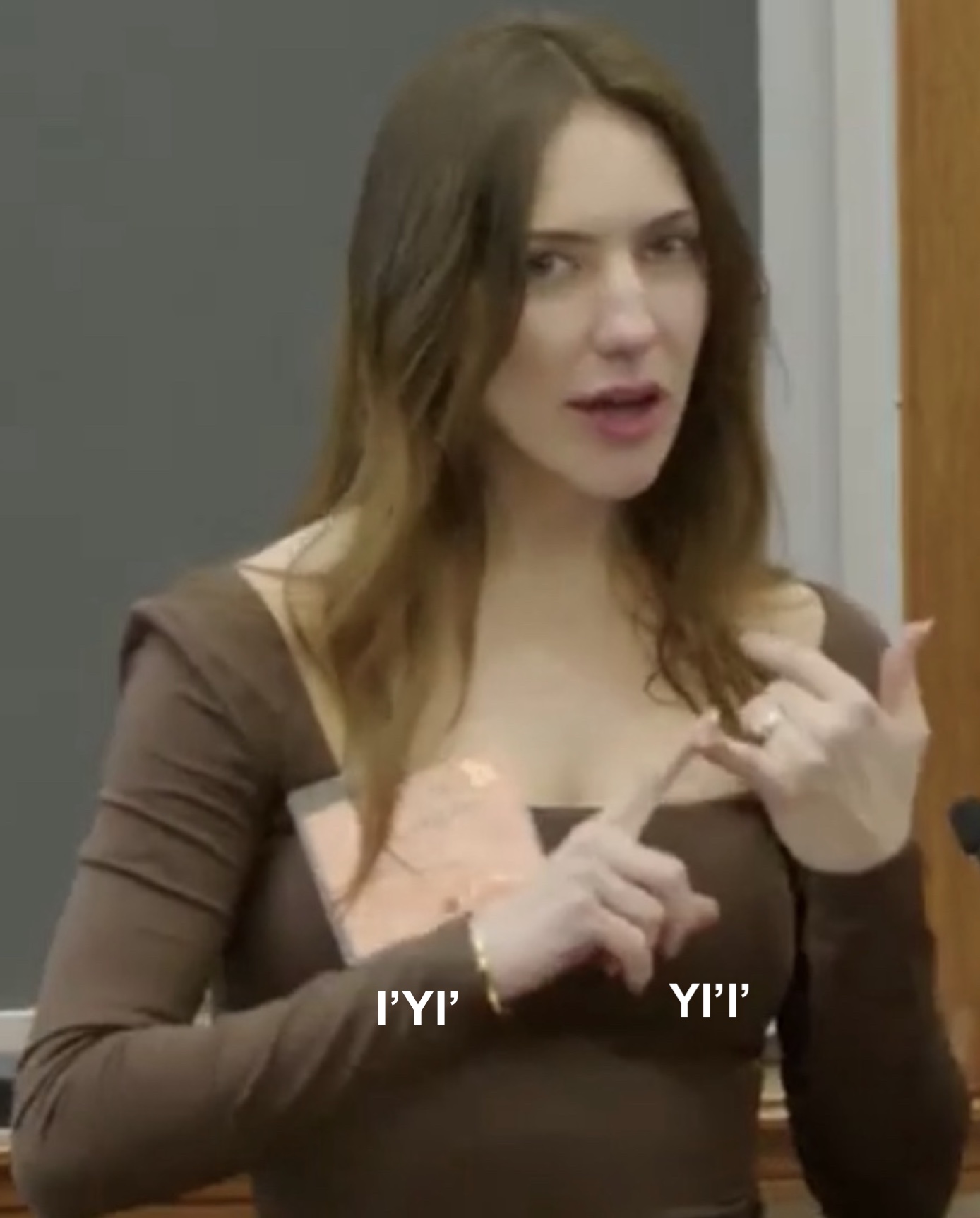 Her Right hand-shape is like Abraham’s ram caught in thicket, a YI confused mess.