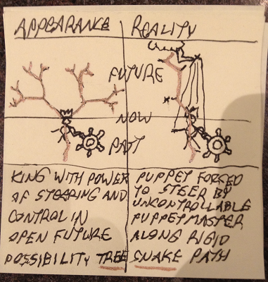 what is totally f’d up: 2006 fail: I developed an Intro ABOUT this article – a summ. of it — on the home page of Egodeath.com, then in 2007 had the good sense to start article w/ that condensed “progressive disclosure” summary. Then Sep 2007 I read-aloud and found too-long, nested sentences. Fixed those. Finalized in Sep 2007. Thus, “2006 / 2007 main article”. Next day, alas, found the word ‘eternalism’, shoulda replaced ‘determinism’