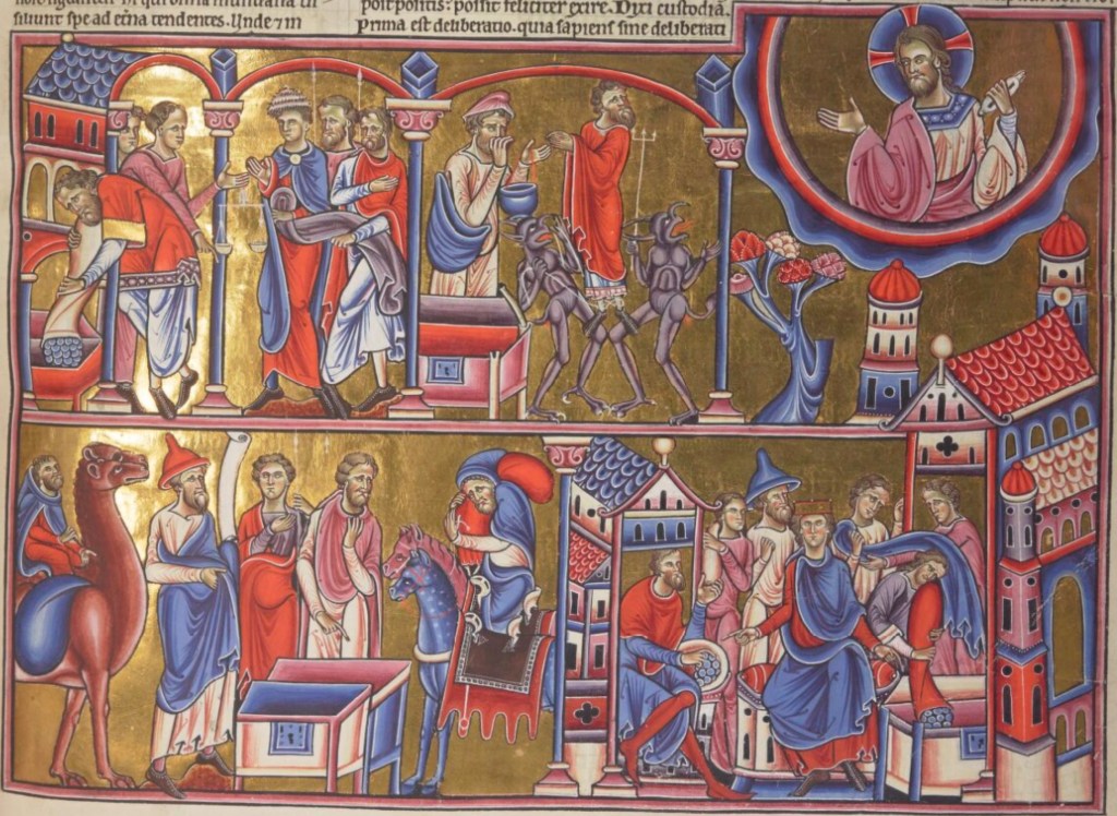 - 🙃 Hanging from Right Leg in Mushroom Tree (Canterbury Psalter f134)
