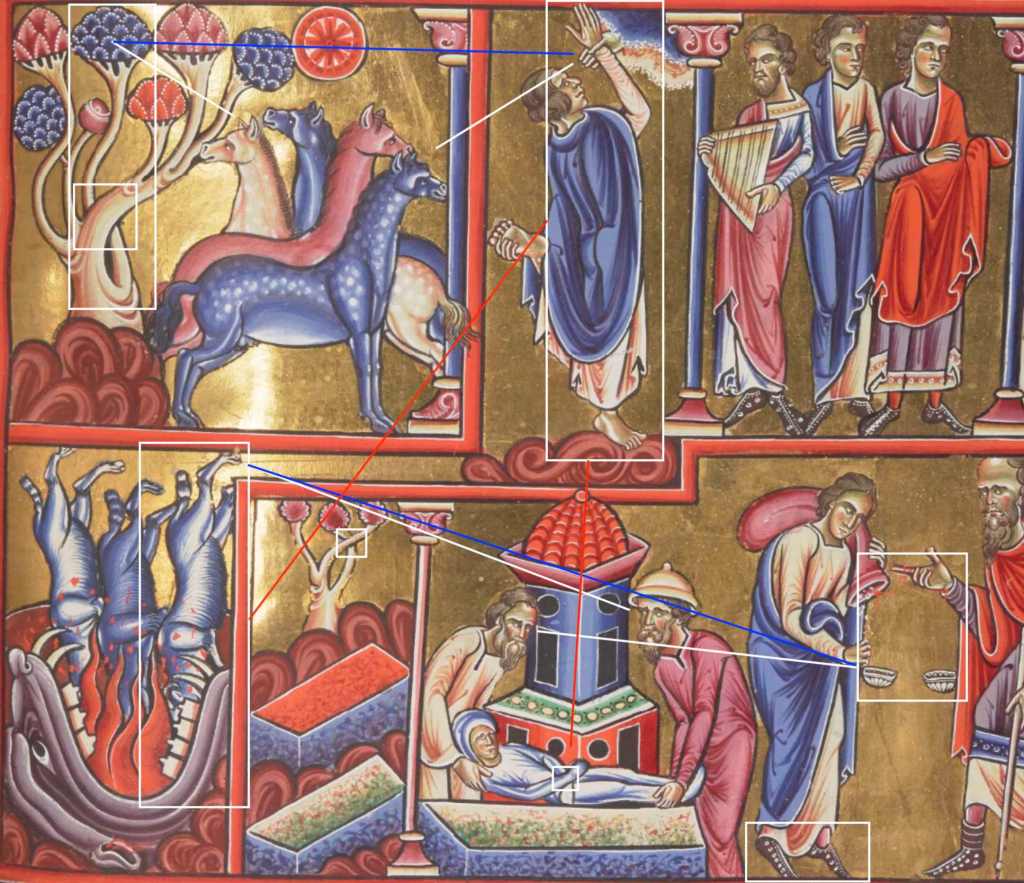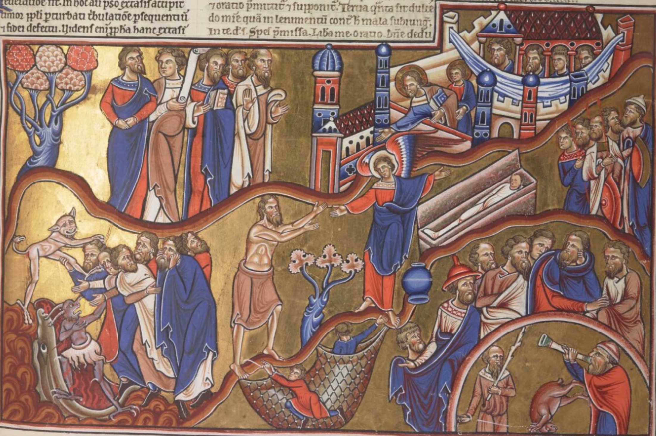 - 🚌 Hellmouth, Net, Ossuary, Cloth, Looking Out from Temple (Canterbury Psalter f109)