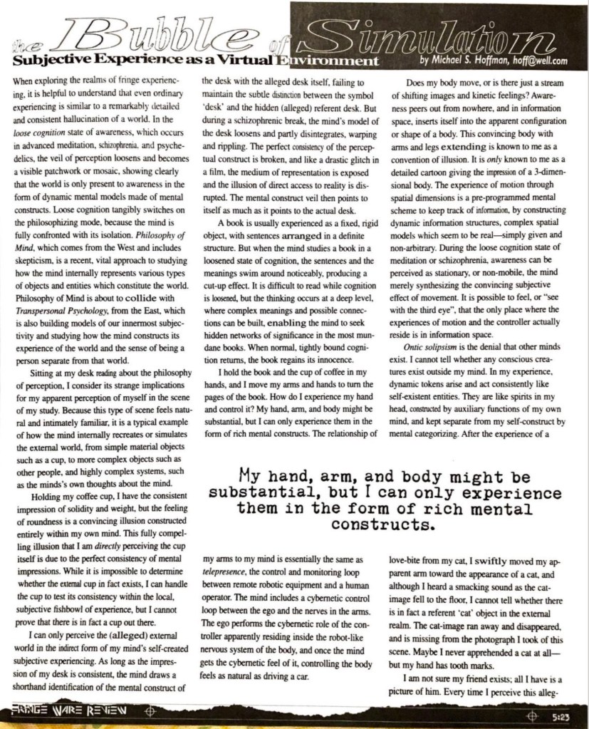 I just can’t keep up with all the brain imaging data coming out but if you just introspect and besides all those brain imaging studies do is explain how the experiences occur