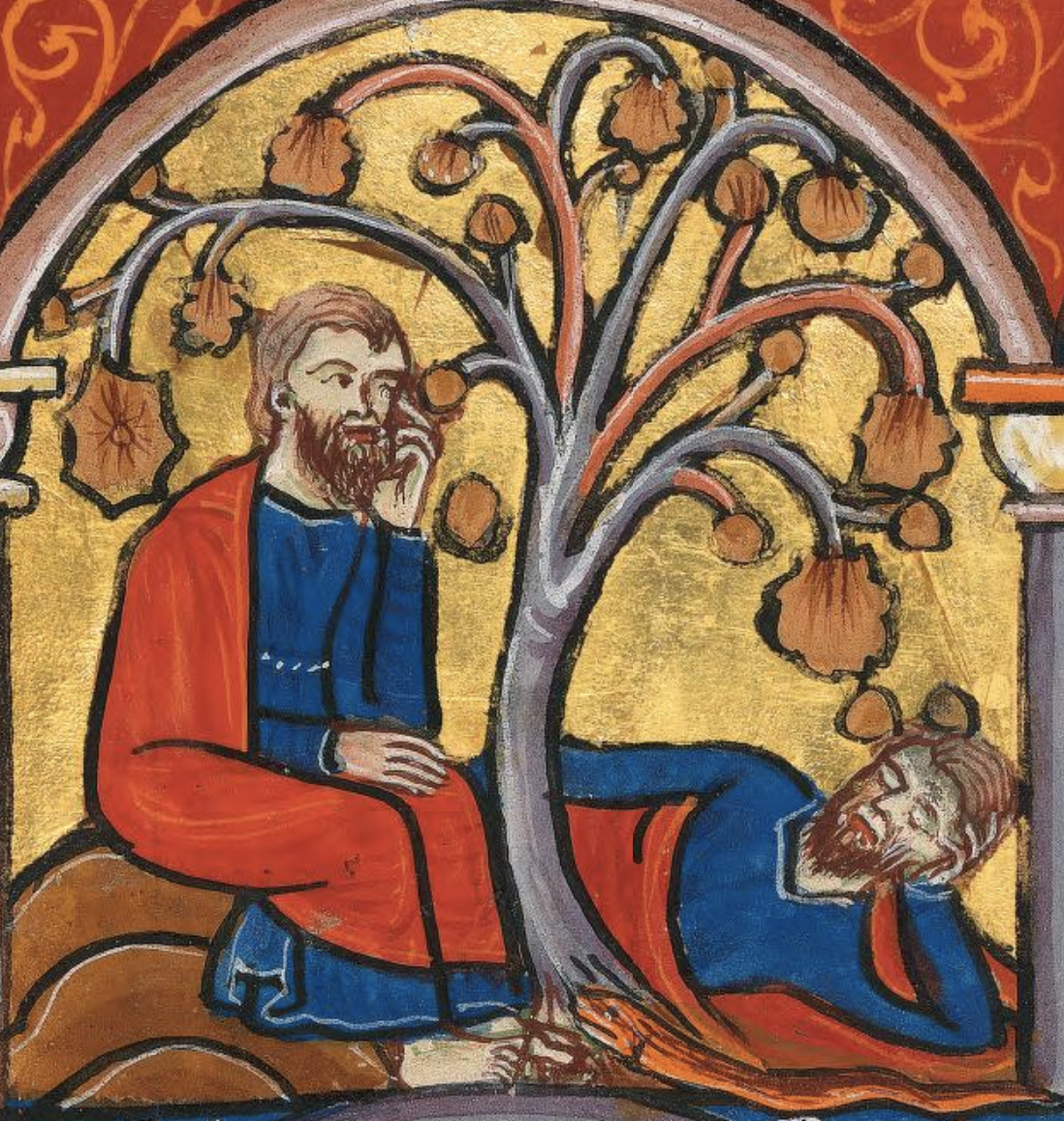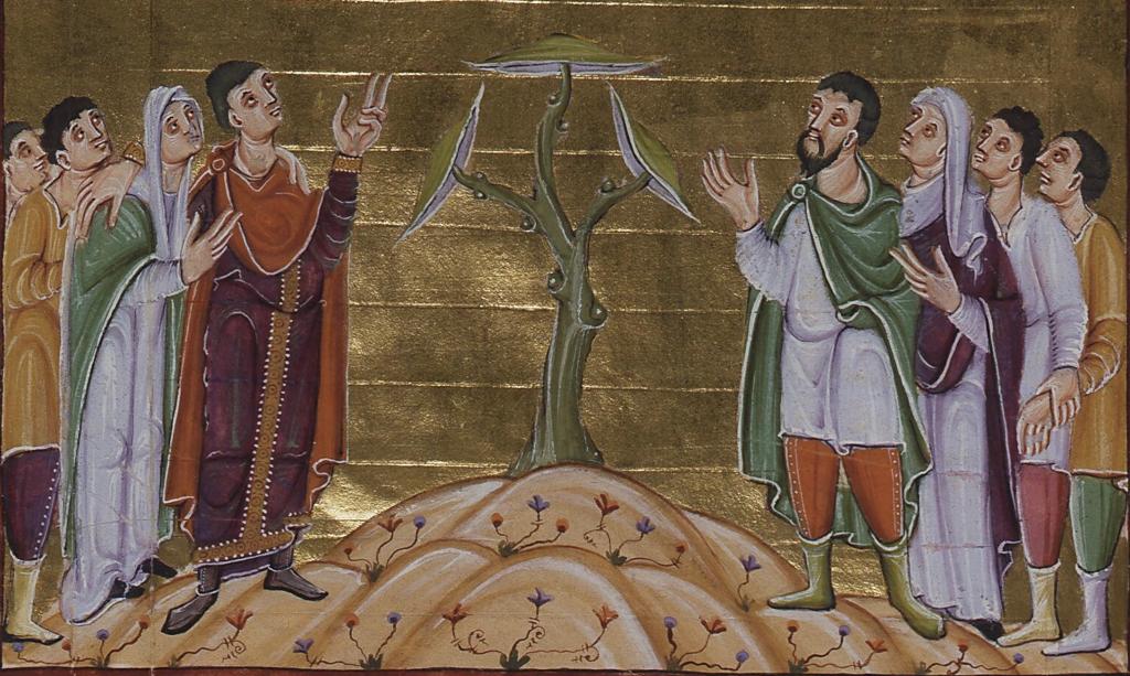 - Reichenau Gospel Book fol. 184v. Has guys on left of tree