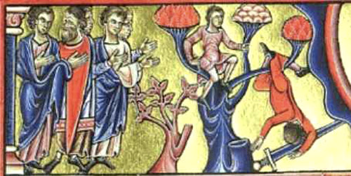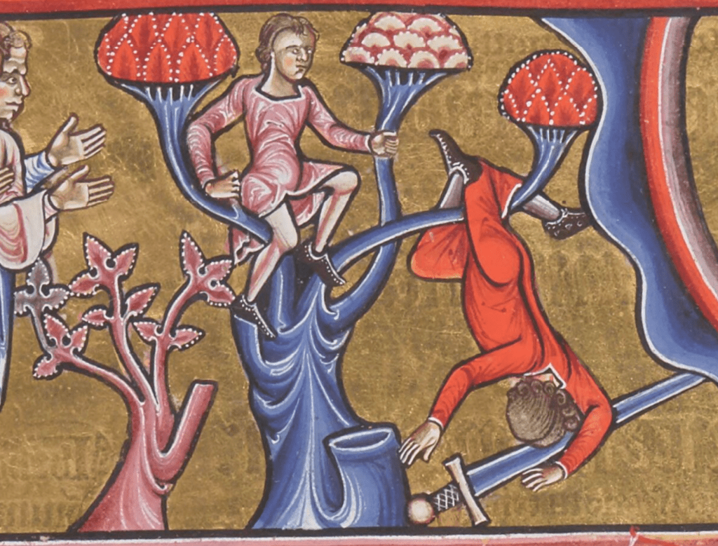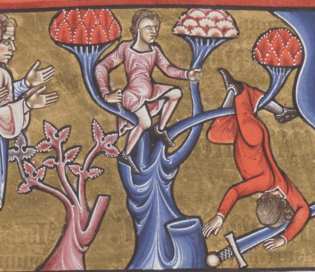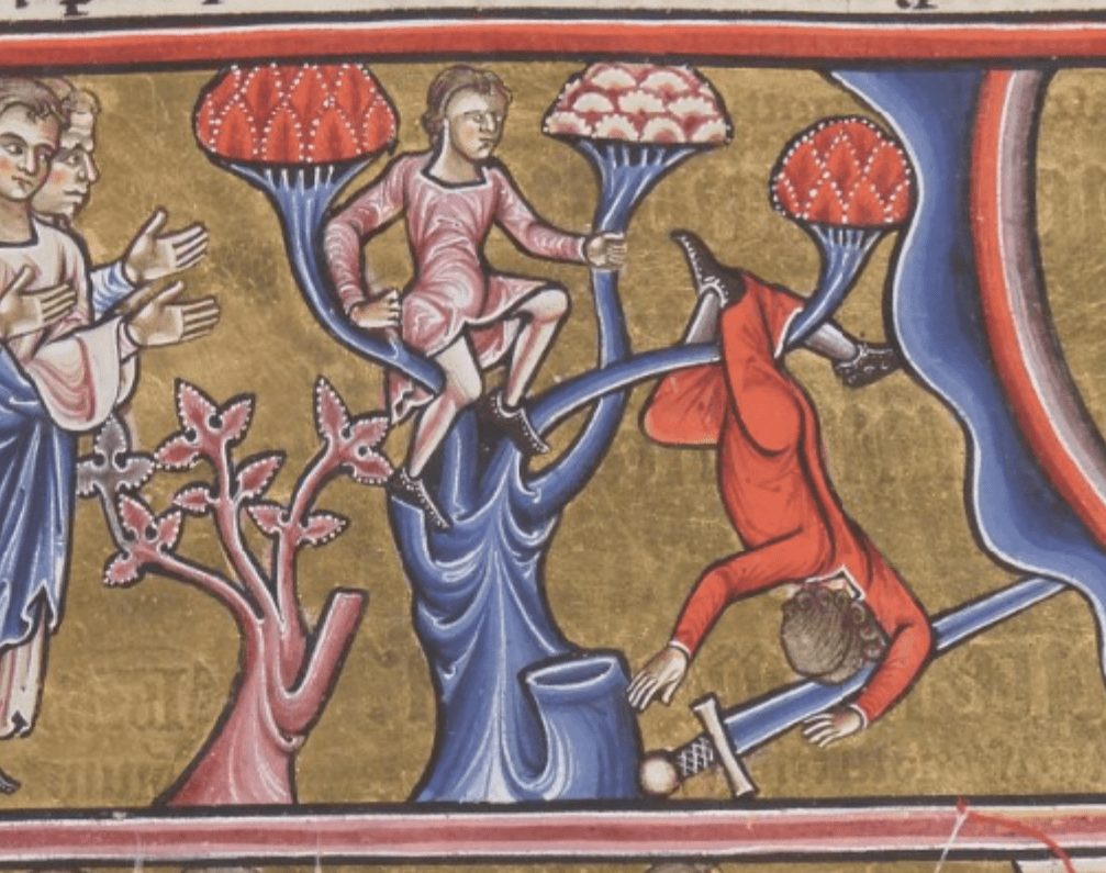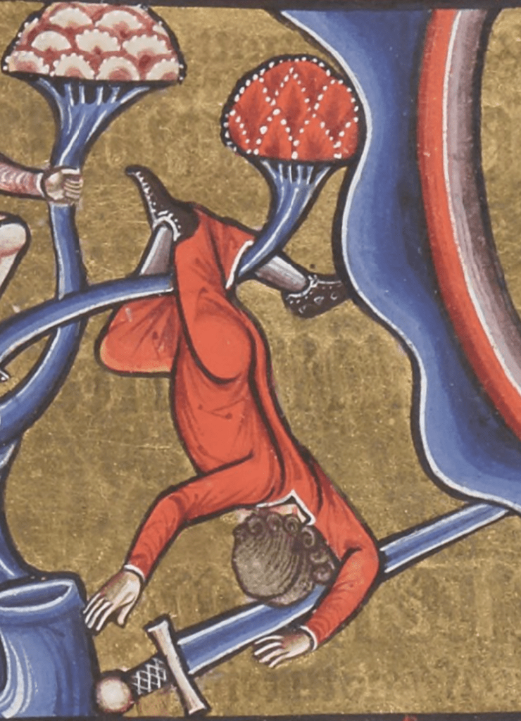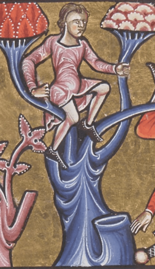 Hanging from Right Leg in Mushroom Tree (Canterbury Psalter f134) – Catalog of Image Crops