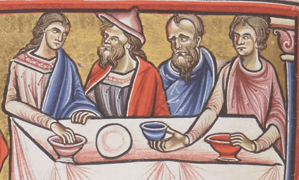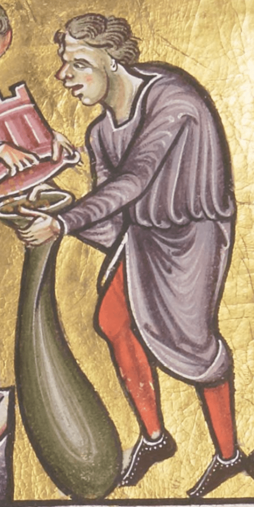 - Relative hand-heights is a driving theme, climaxing in the problematic hands of psalter viewer (right-hand fingertip height), bucket receiver, balance-holder, and hanging upside-down figure.